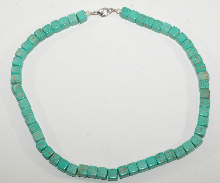 Howlith/Türkis-Halskette mit Kautschuk -Zwischenteile Silber