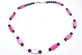 Edel Weiß/Rosa Perlmutt Halskette mit Lapislazuli